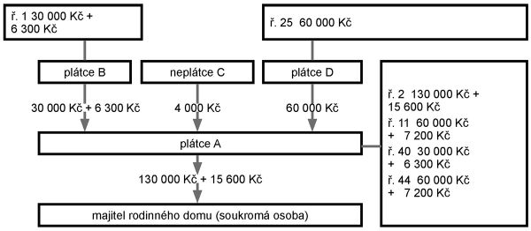 Níže je zobrazeno schéma tohoto případu včetně uvedení plnění na řádcích přiznání.