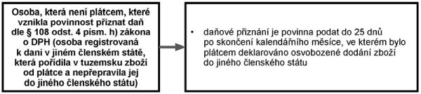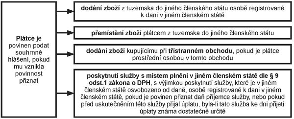 Plátce se čtvrtletním zdaňovacím obdobím uskutečňuje z plnění, která se vykazují v souhrnném hlášení, pouze poskytování služeb s místem plnění v jiném členském státě dle § 9 odst. 1 ZDPH osobám registrovaným k dani v jiných členských státech. Souhrnná hlášení podává ve lhůtě pro podání daňového přiznání vždy za kalendářní čtvrtletí. V červnu 2026 dodá zboží do jiného členského státu osobě registrované k dani v jiném členském státě. Dle zákona o DPH je za této situace povinen podat do 25. 7. 2026 souhrnná hlášení za kalendářní měsíce druhého čtvrtletí roku 2026, čili souhrnná hlášení za duben 2026, květen 2026 a červen 2026 s tím, že pokud v dubnu či květnu 2026 žádné plnění, které se vykazuje v souhrnném hlášení, neuskutečnil, pak za daný kalendářní měsíc souhrnné hlášení nepodává. Při uskutečnění v souhrnném hlášení vykazovaných plnění do konce roku 2026 pak podává souhrnná hlášení již za kalendářní měsíce.